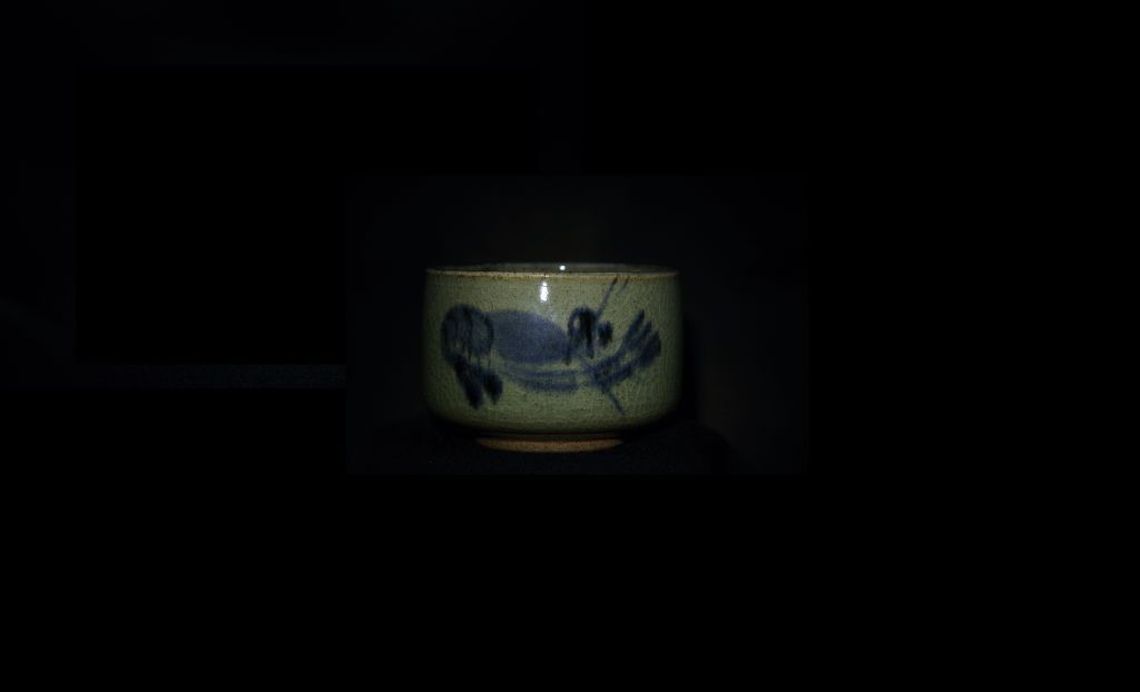 隨著更深入古老山徑,錯落著傾頹的古厝,獸類腥羶陣陣撲鼻,原來不畏生人的白鼻心及果蝠,早已入主多年。期間,門口發現幾件形式完好厚重、豪邁畫風、灰藍色的陶碗,在方圓十里杳無人煙的山中還摻著幽幽殘存的人味。(原載於陶藝雜誌67期 截錄)